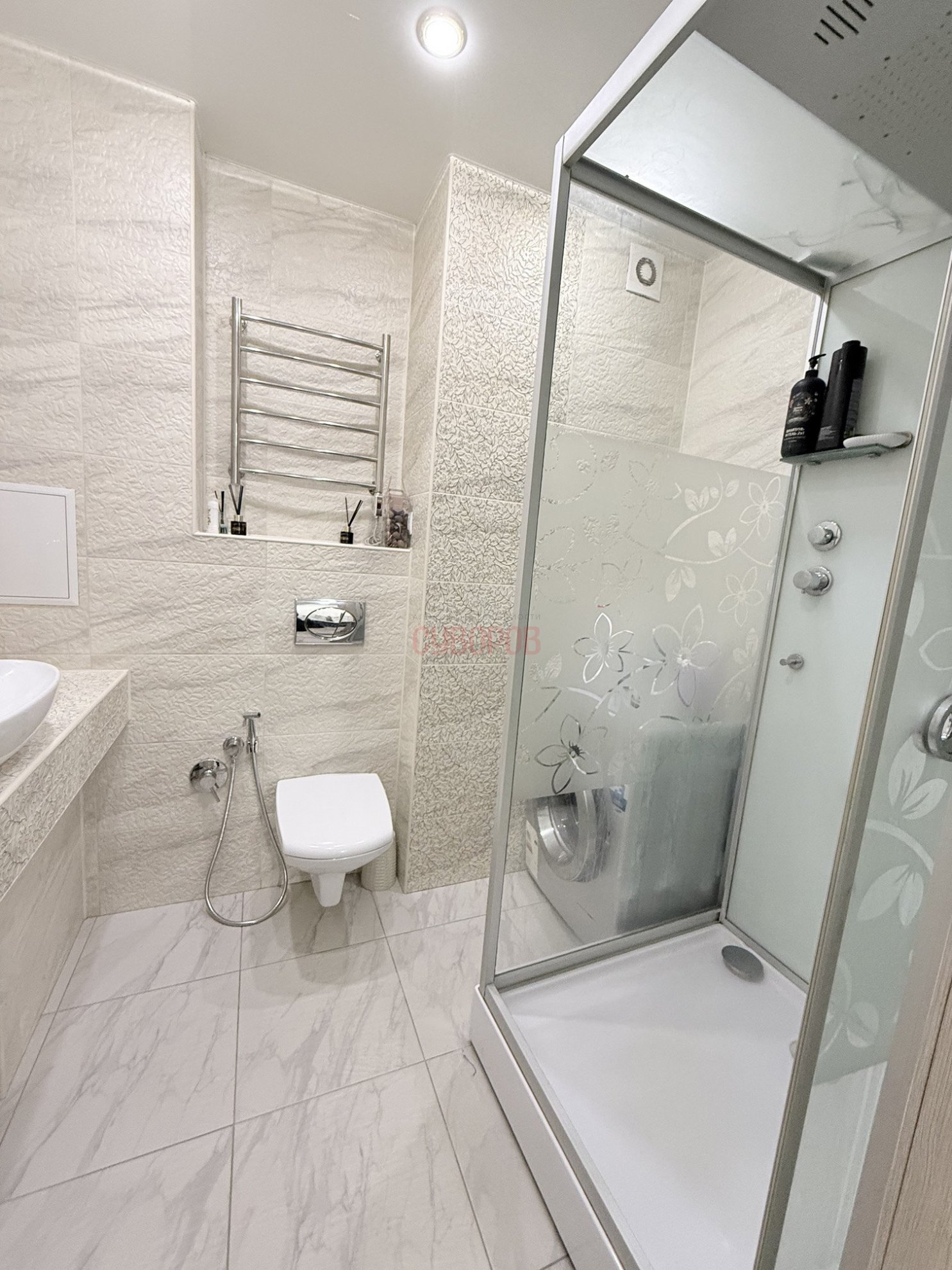 Квартира в прекрасном состоянии, в монолитном 16 ти этажном доме. Перепланировка квартиры выполнена при проектировании и строительстве дома (сдача в черновой отделке была в 2016 г.) В квартире выполнен качественный ремонт высококачественными материалами (отделка в спокойных, светлых тонах, Стены выровнены по маякам. Подробнее о квартире: полы выполнены из износоустойчивого и влагостойкого ламината, в санузле полы и стены из плитки KERAMA MARAZZI, качественный унитаз Cersanit Польша с инсталляцией Франция, большая душевая кабина Erlit Er mia 90x90 (с одной дверью), гигиенический душ Германия. Водопроводная разводка выполнена из меди. Потолки натяжные из дышащего тканевого материала (Франция). Также имеется 3 застекленных балкона (панорамные окна), оборудованная небольшая гардеробная комната. Проведен Wi-Fi, кабельное телевидение.