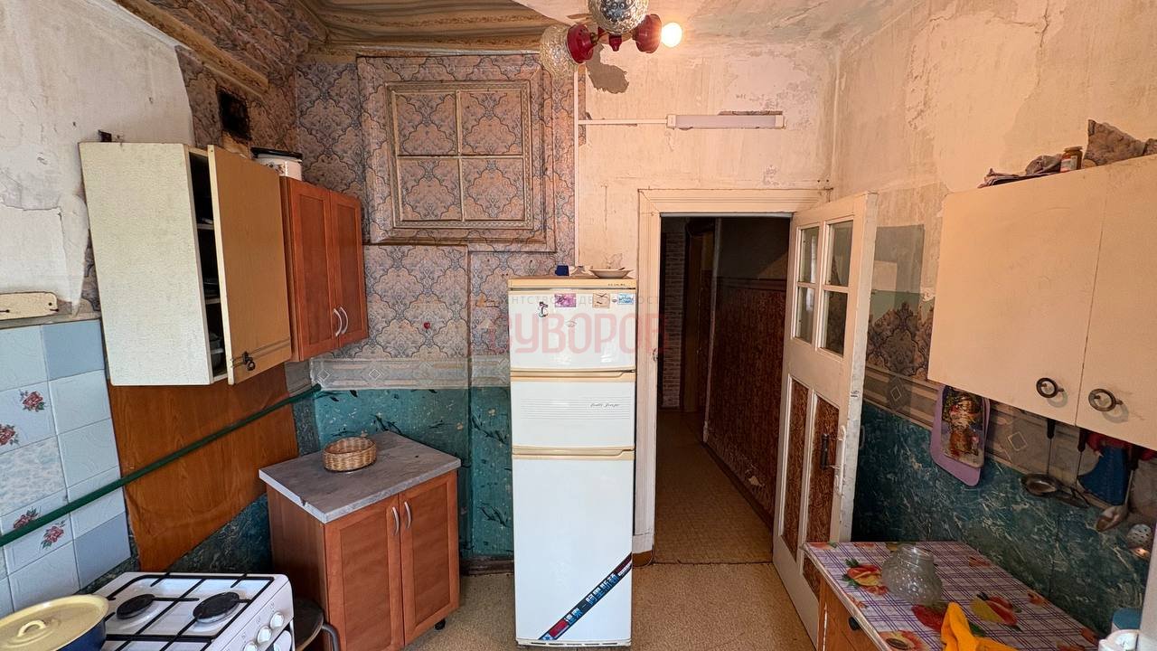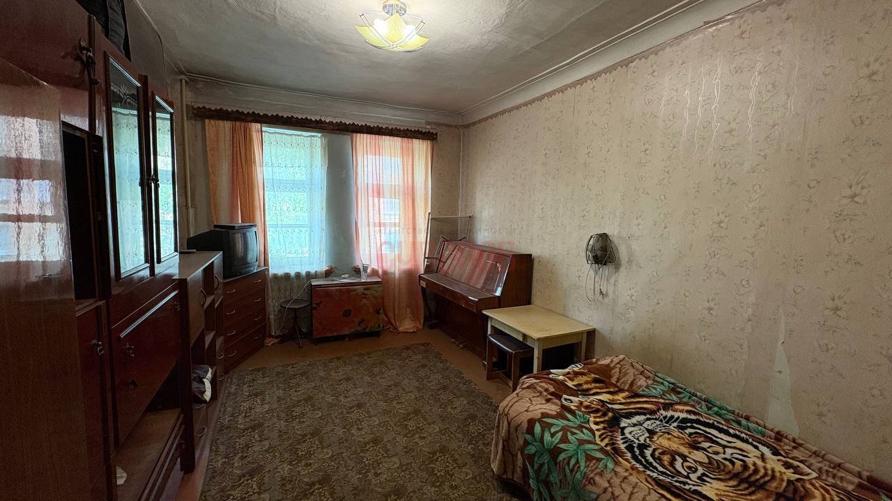 Комната в 3-комнатной квартире (на 3 хозяина) на 1 этаже 2-этажного дома. Окна выходят во двор.