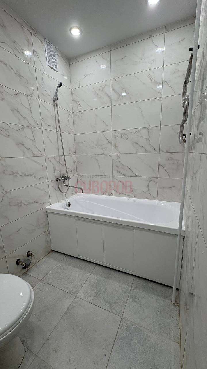 Санузел совмещенный, плитка кepaмогрaнит, тpопичecкий душ , теплые полы.