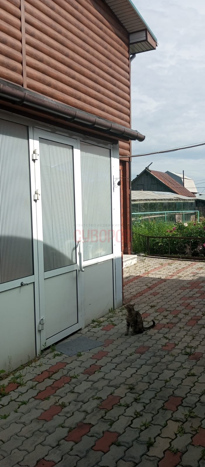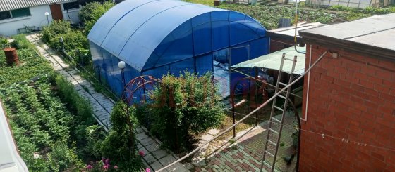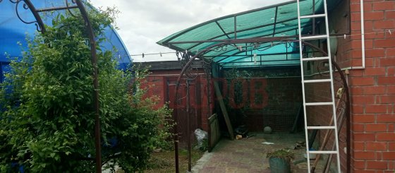 Дом строится, есть проект, фундамент есть, ставни стоят, крышу надо застилась, S = 180 м, есть фундамент под доп постройки. Имеется цоколь.