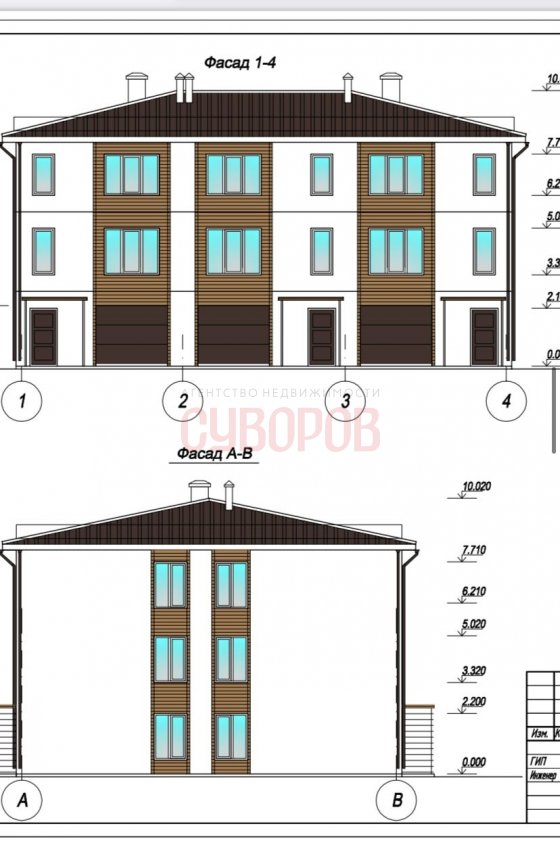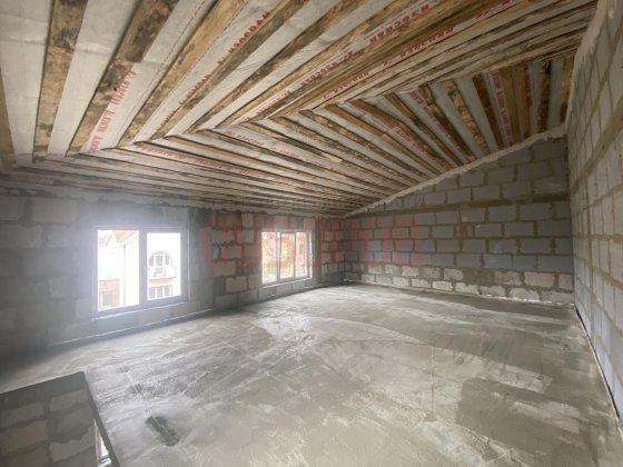 Трехэтажный таунхаус. На первом этаже гараж. 1 сотка земли. Черновая отделка. Разводка электричества. Централизованное отопление, канализация, вода, водяной пол.