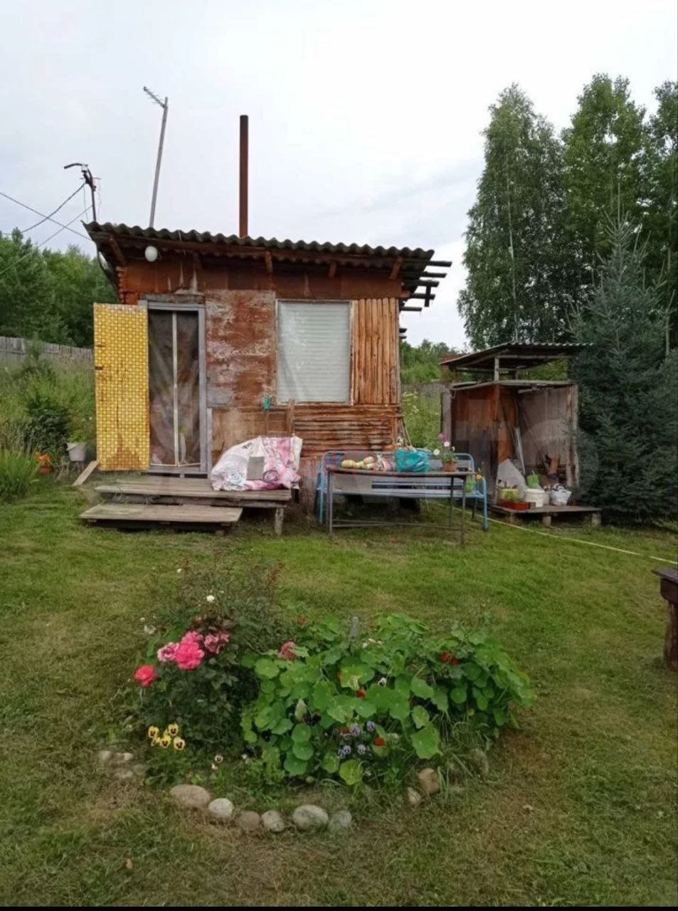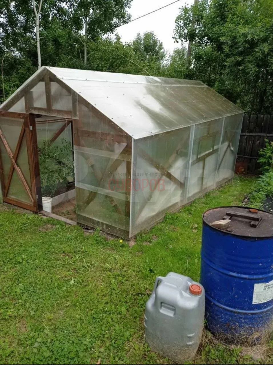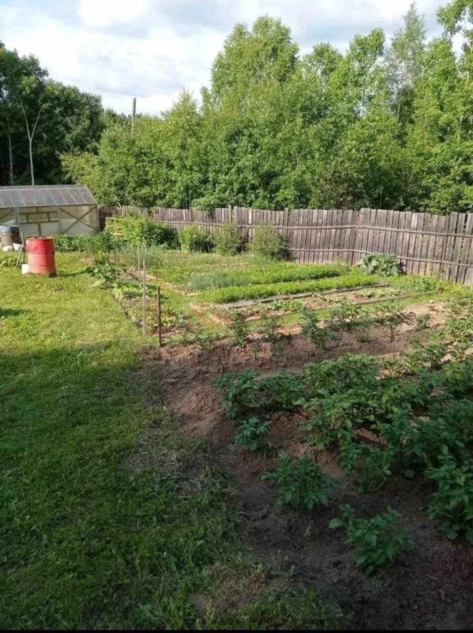 Земельный участок на 2/3 отсыпан булыжником, ПГС и песчаной вскрышкой. Новый забор из профлиста, новый туалет, яма под летний душ. Отсыпана подушка под дом 6*6 м. На участке 4 красивых березы. Есть летний водопровод, новые трубы. Проведено электричество, новый счетчик.