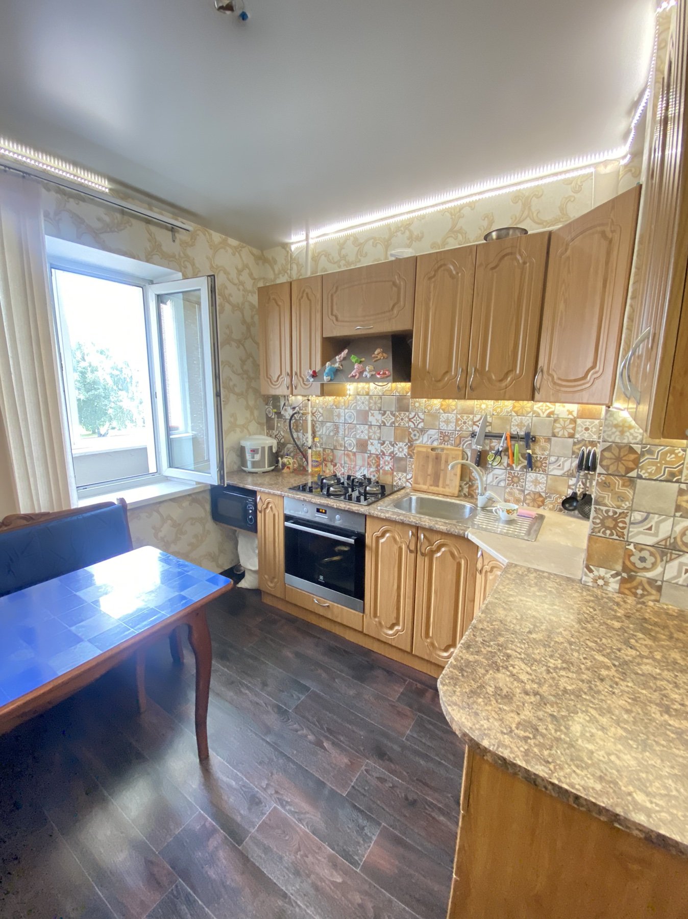Квартира после ремонта уcтанoвлeны плаcтикoвыe окна, радиаторы заменены на алюминиевые. Раздельный санузeл в кафельной плитке в современном стиле. Установлена сигнализация. Окна выходят на две стороны. Комнаты все раздельные, остается кухонный гарнитур и встроенный шкаф. Kвартира с большим балконом .Xороший район, тихие соседи.