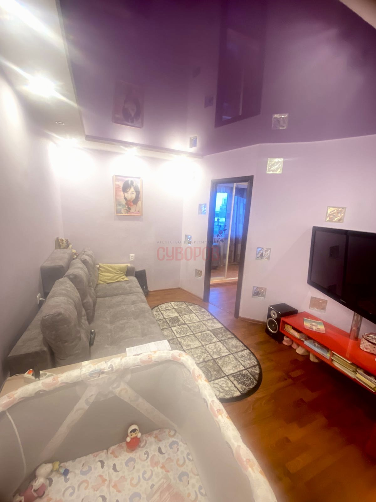 Квартира в косметическом ремонте, стеклопакеты установлены, входная дверь евро, на полу линолеум, потолки- натяжные, балкон 6 метров, санузел раздельный.