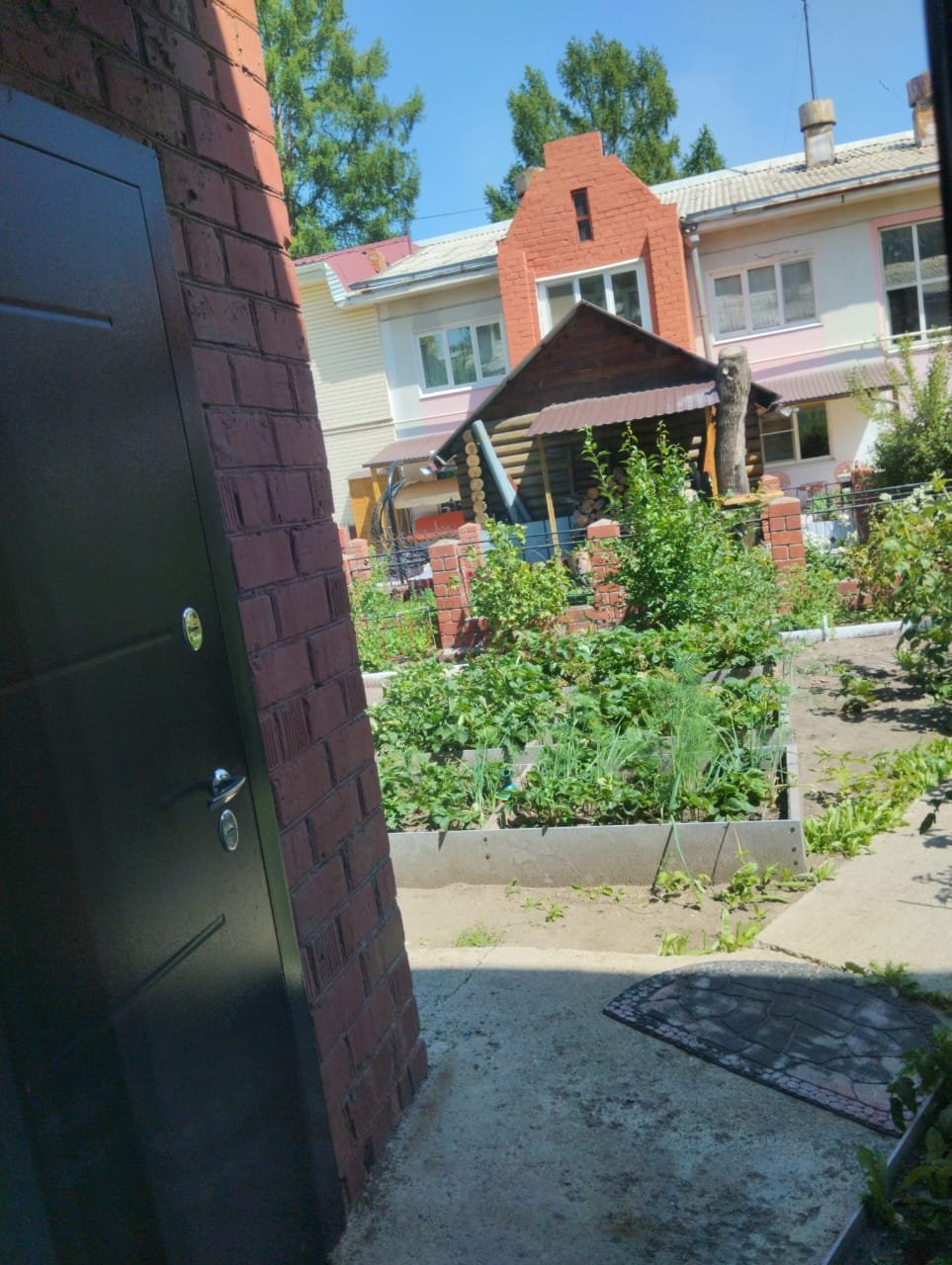 Также в собственности есть 1 сотка земельного участка, где располагаются огород. Выход в огород через холодный пристрой. Есть еще садик. Там растет сакура, виня, жимолость и садовые цветы.