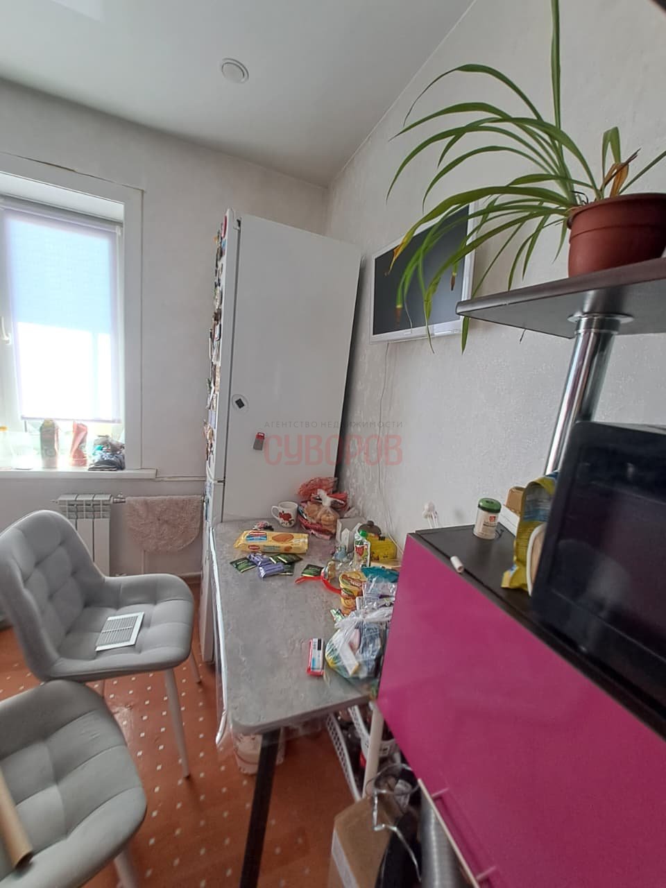 Установлены стеклопакеты, радиаторы заменены на алюминиевые, на полу линолеум.