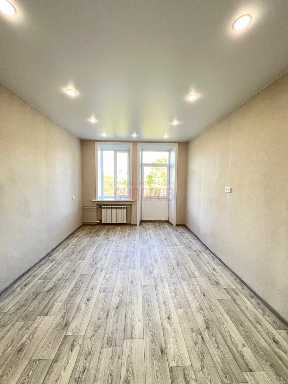 Установлены стеклопакеты, на полу ламинат, потолок натяжной. Планировка на две стороны.