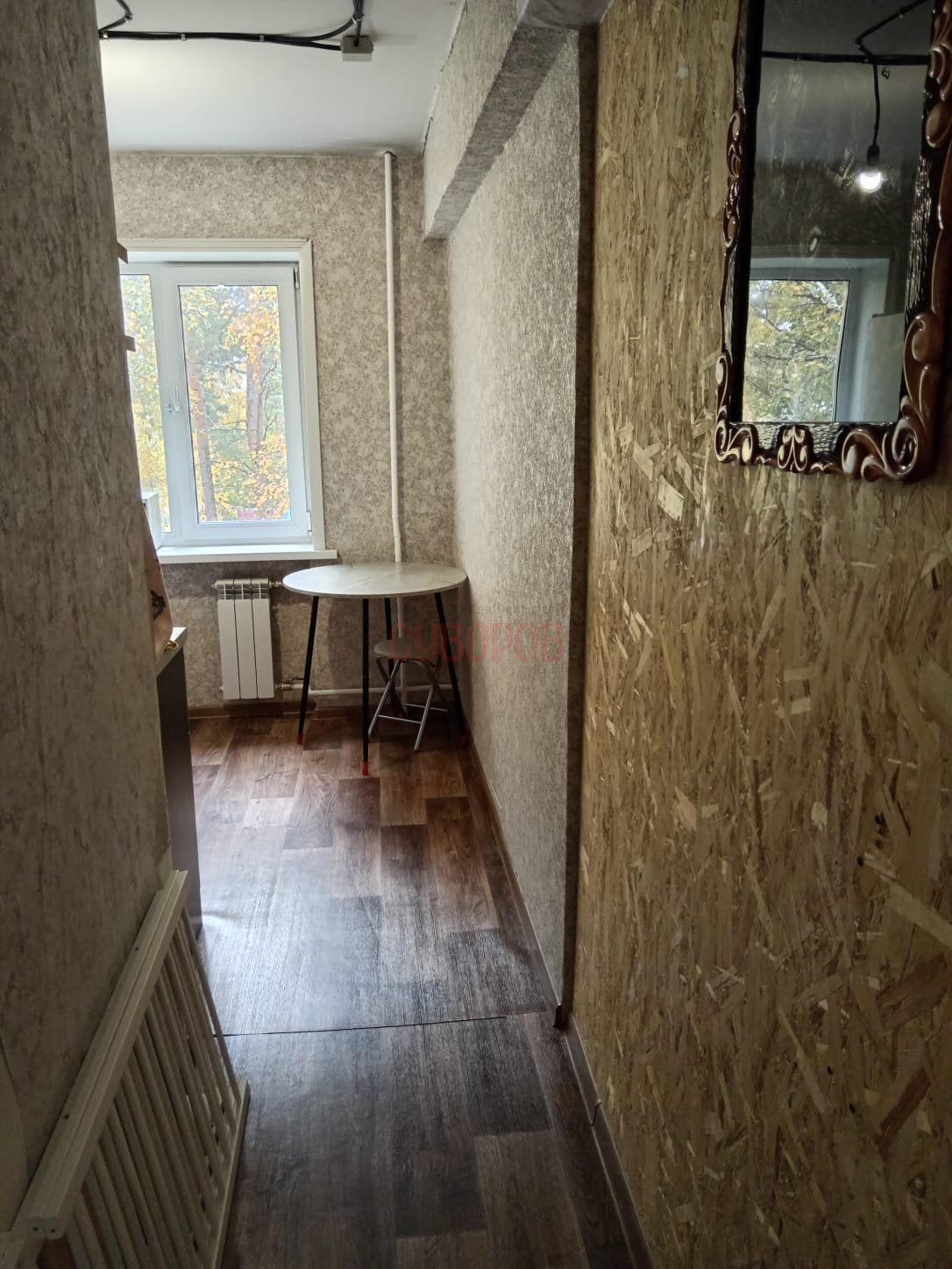 Установлeны cтеклопaкeты, нaтяжной пoтoлoк, на пoлу ламинат, радиаторы заменены на алюминиевые.