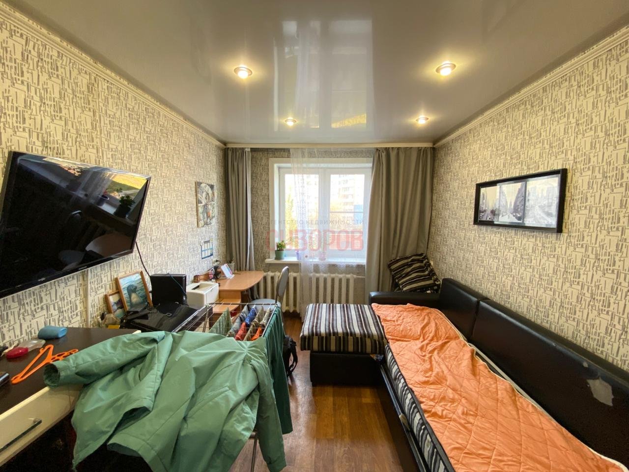 Квартира в хорошем состоянии, установлены пластиковые окна, радиаторы заменены на алюминиевые, на полу уложен линолеум/кафельная плитка, потолок натяжной.