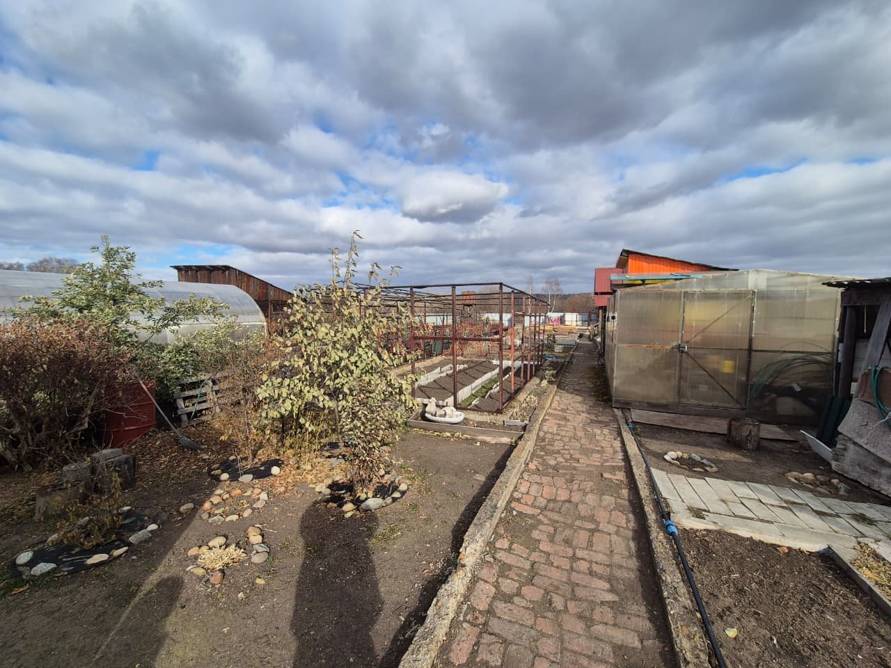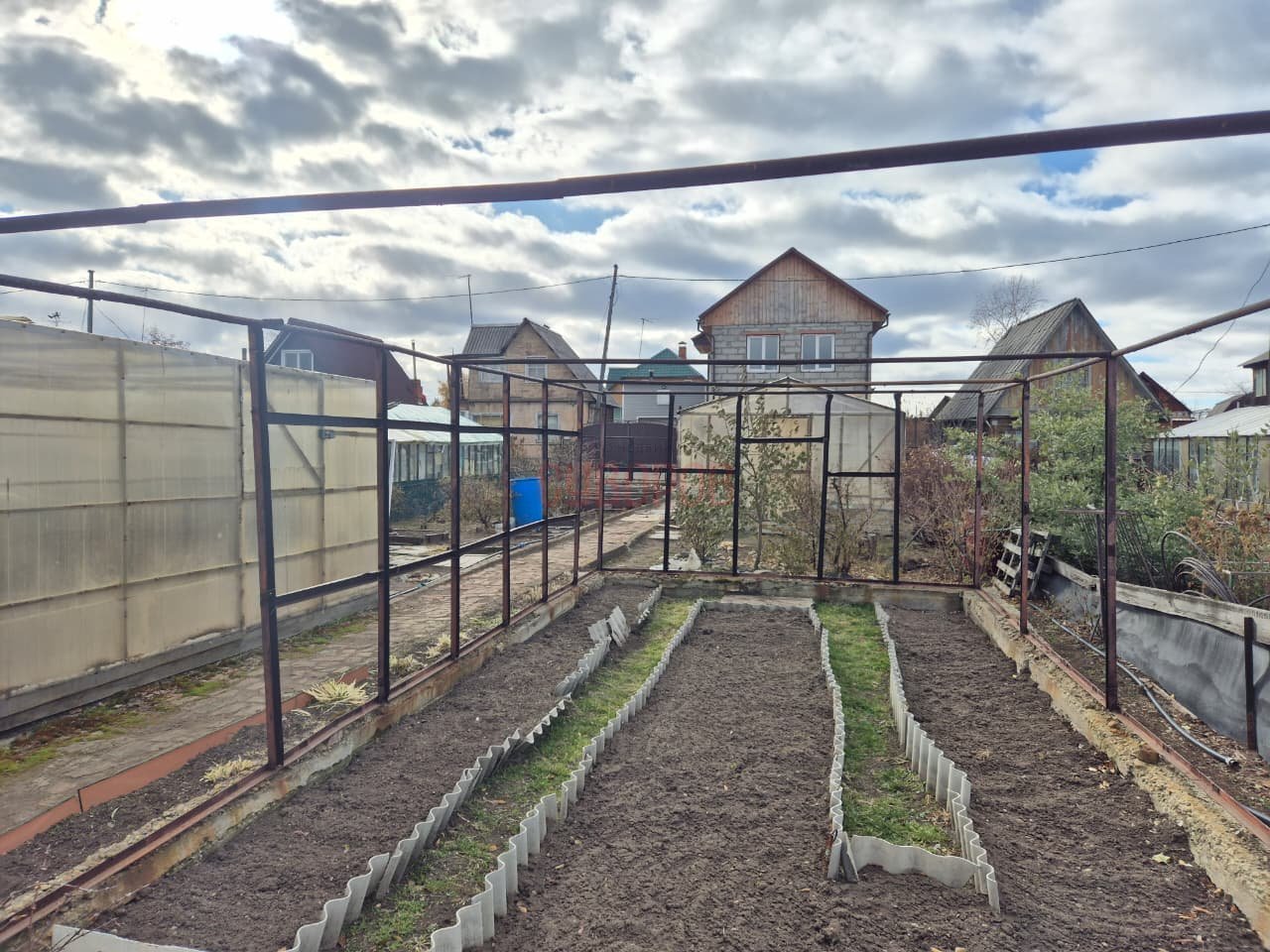 На участке имеются плодовые кусты (вишня, черешня, смородина, крыжовник, малина, клубника), аккуратные грядки, теплица 4×10 м и 4×6м. Грунт обновляли осенью 2024 года, очень высокая урожайность. Есть хозпостройки: курятник утепленный и с обратной стороны пристроен сарай.