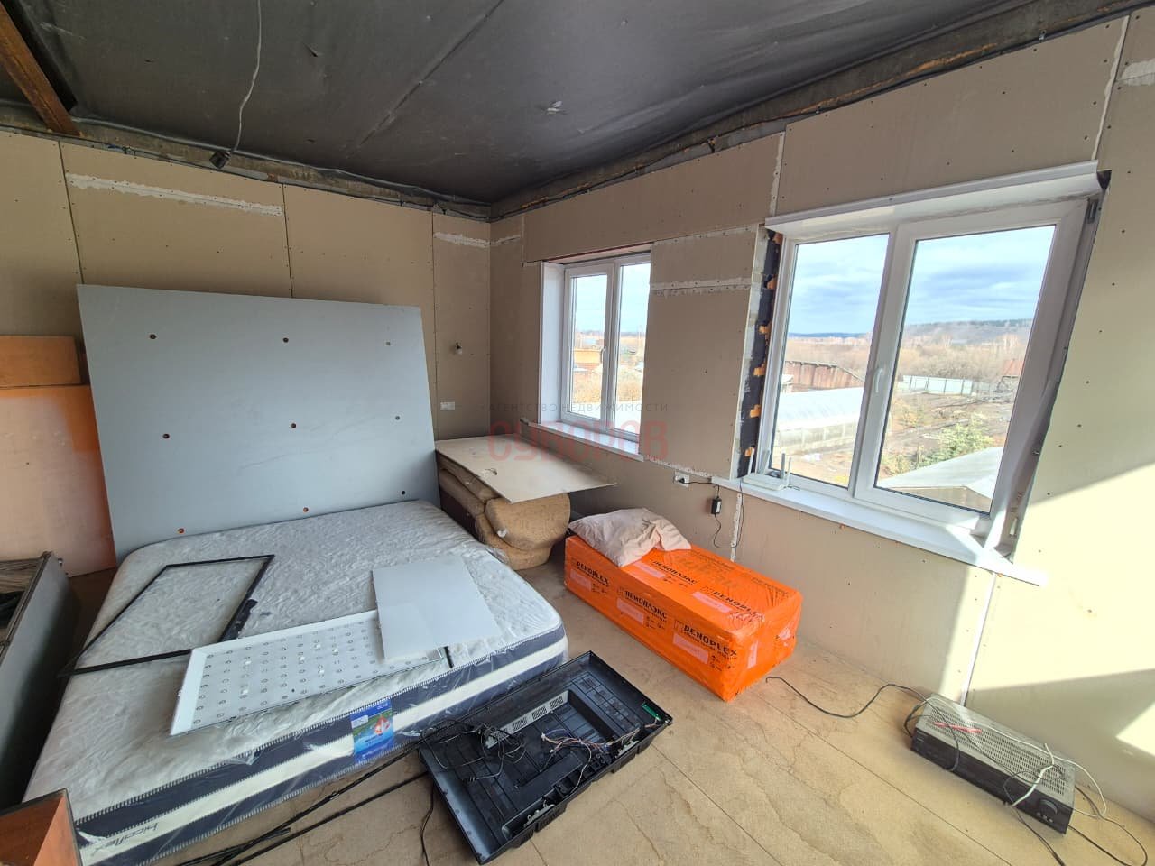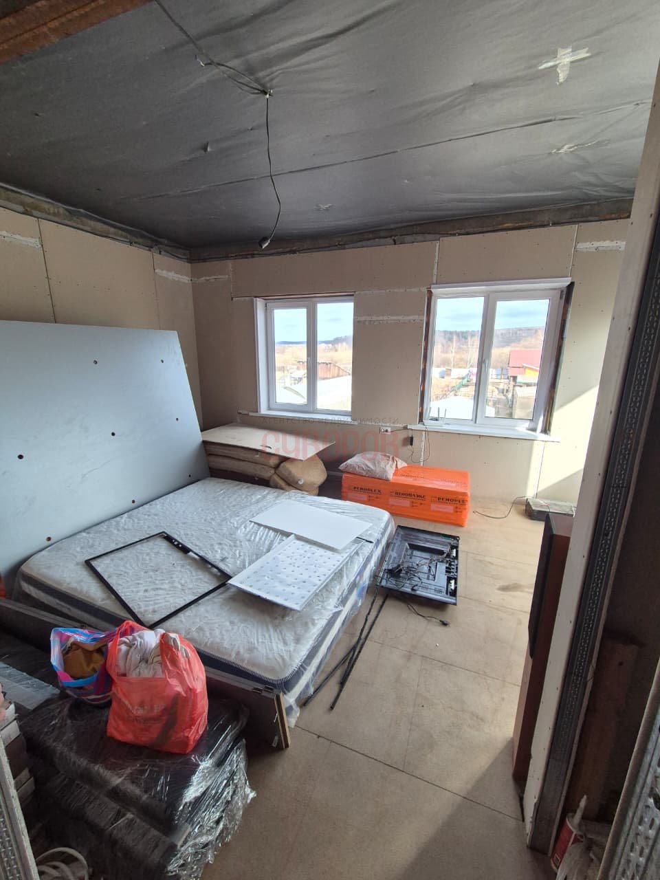 — 2 этаж — три комнаты, ещё один санузел, гардеробная. Выполнена полностью черновая отделка.