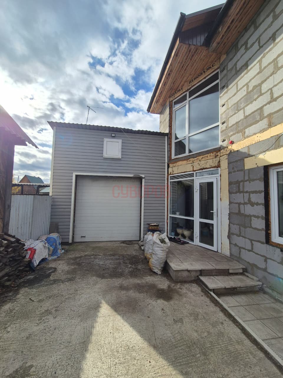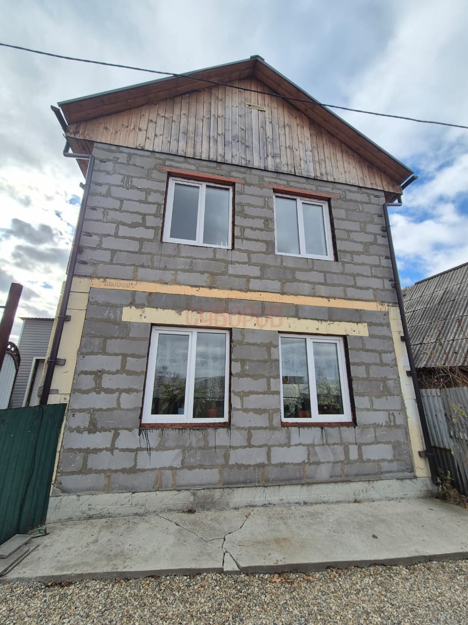 Дом стоит на надёжном фундаменте плите, перед заливкой плиты производилось грунтозамещение, стены газоблоки, перекрытия монолитная плита, крыша покрыта металлочерепицей, окна — стеклопакеты, двойная входная дверь. Дом частично обшит сайдингом (с трёх сторон). К дому пристроен гараж, вход из дома. По периметру — забор, распашные ворота и парковочное место для машины. Установлена сигнализация — можно чувствовать себя в безопасности. Сам дом на сигнализации.