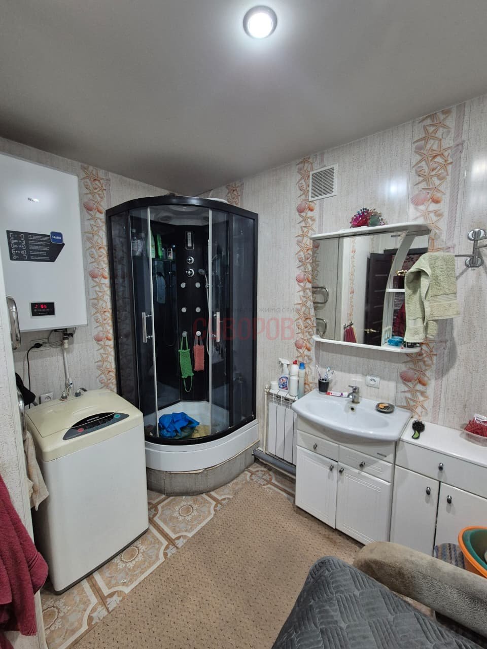 — Санузел в доме: душевая кабина, стиральная машина;
