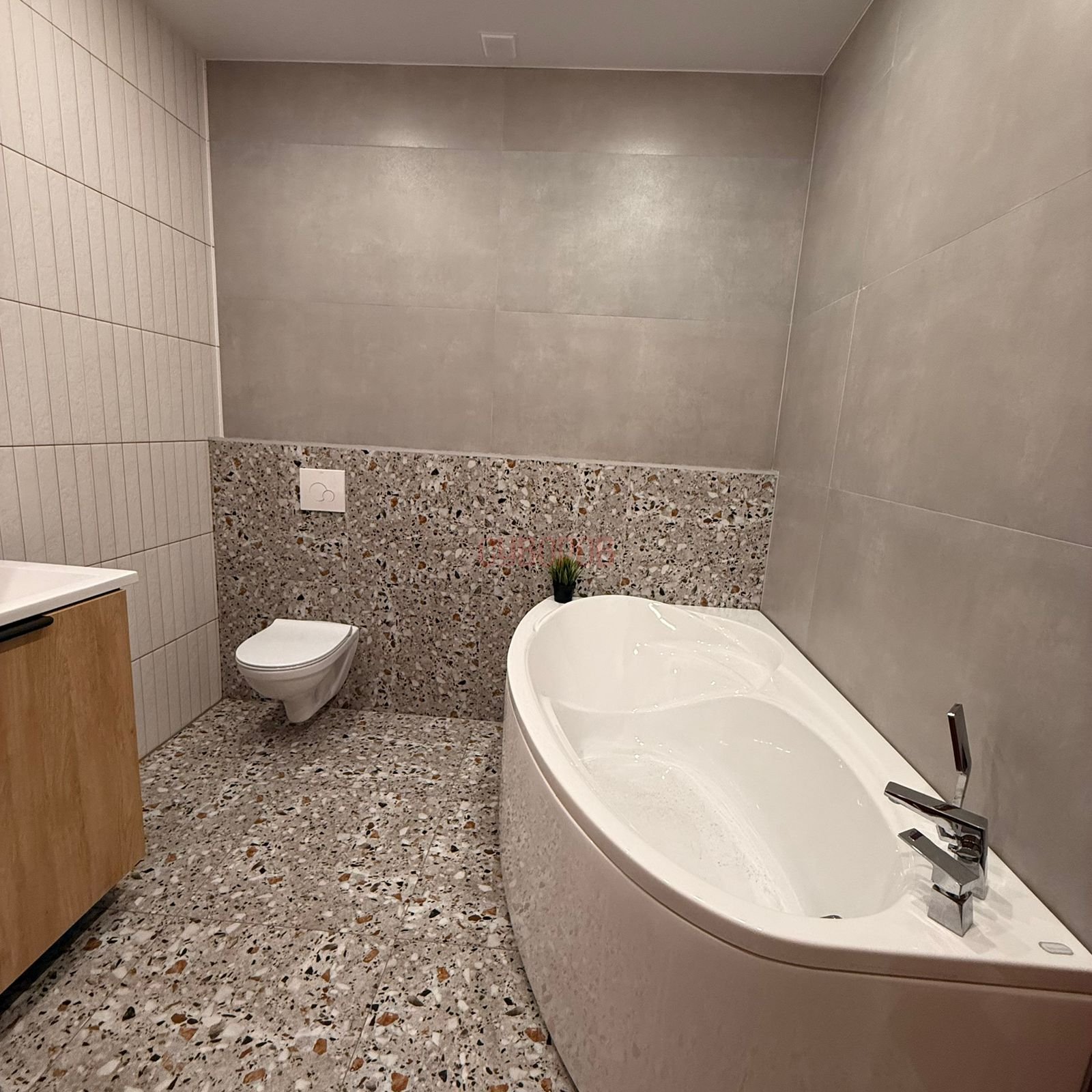 Раздельные комнаты, раздельный санузел. Подвесной унитаз, кафельная плитка.