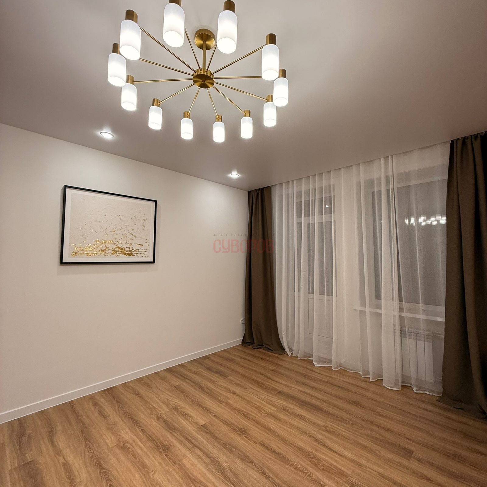 Установлены стеклопакеты, радиаторы алюминиевые. На полу ламинат, потолок натяжной.