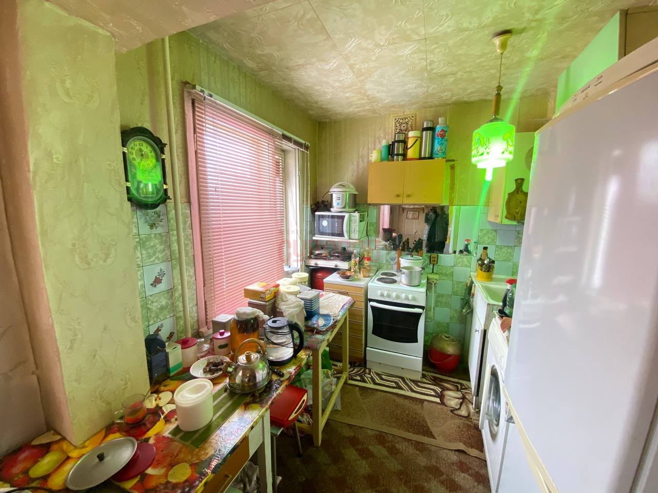 Квартира в обычном состоянии, требует ремонта. Окна деревянные, радиаторы чугунные. На полу линолеум, потолок плитка ПВХ.