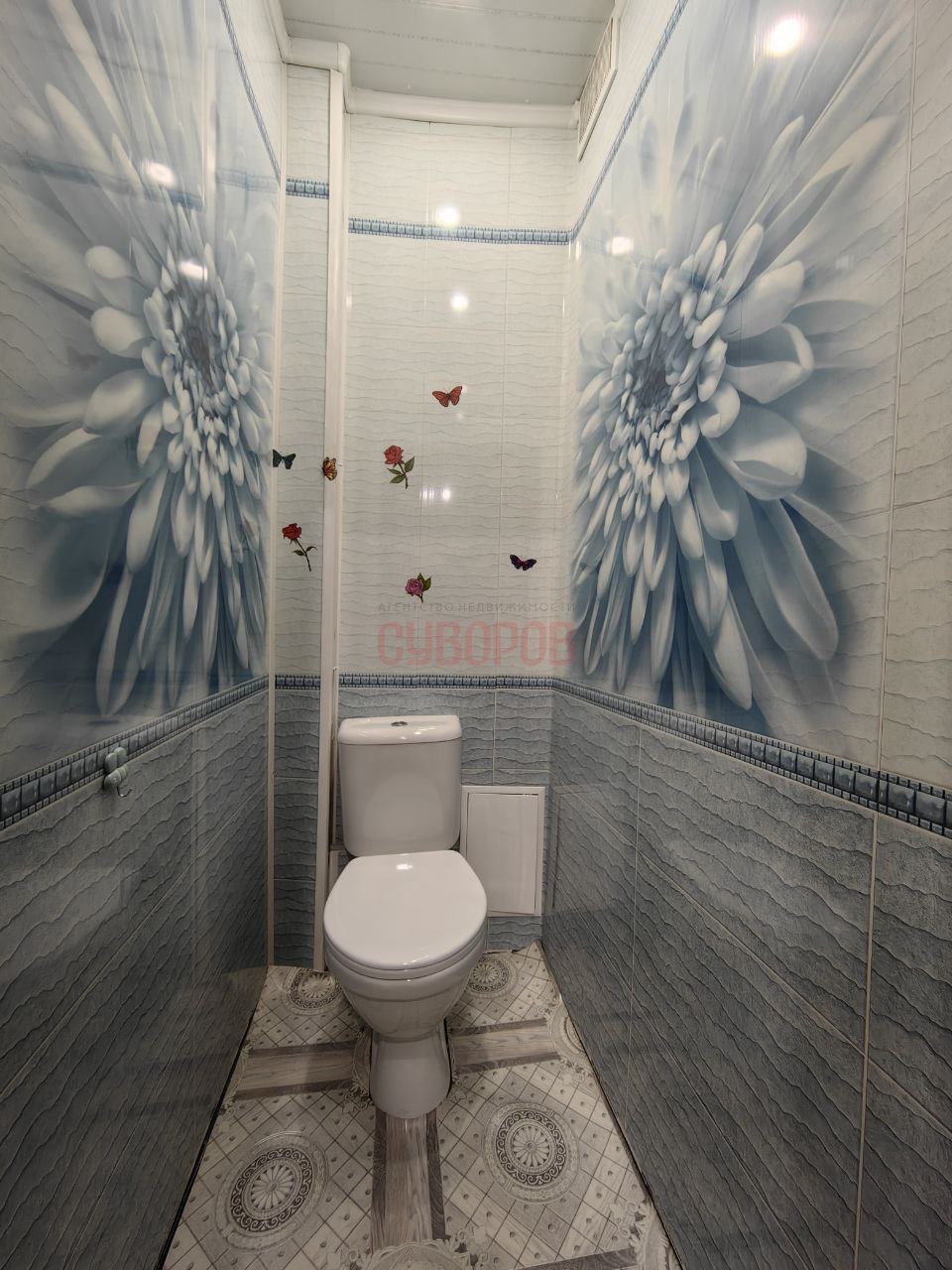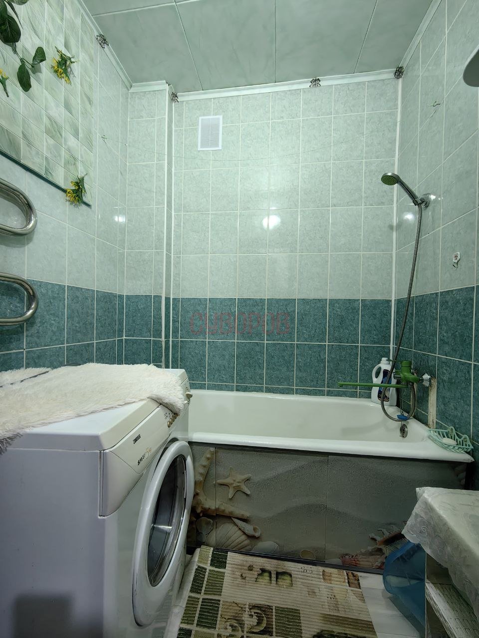 Cанузeл cовмещен, установлена кафельная плитка.