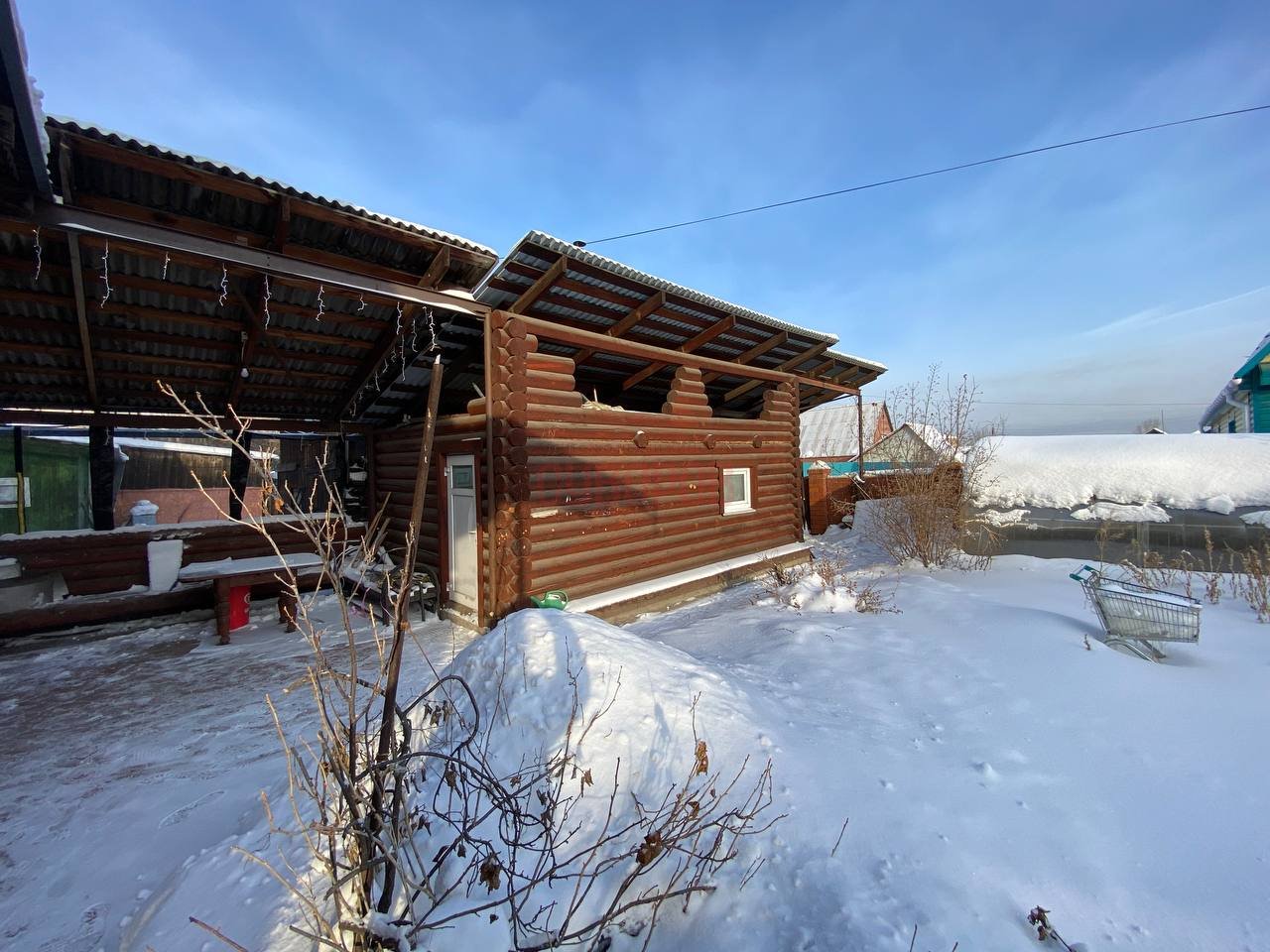 Участок оформлен с любовью: здесь красивые деревянные тропинки, бревенчатые грядки, теплица, а весь участок выложен геотекстилем и покрыт корой дерева. Также на территории есть беседка, которая отлично подойдет для семейных посиделок, двор достаточно просторный для установки батута и качелей, а также имеется вольер для собак и курятник.