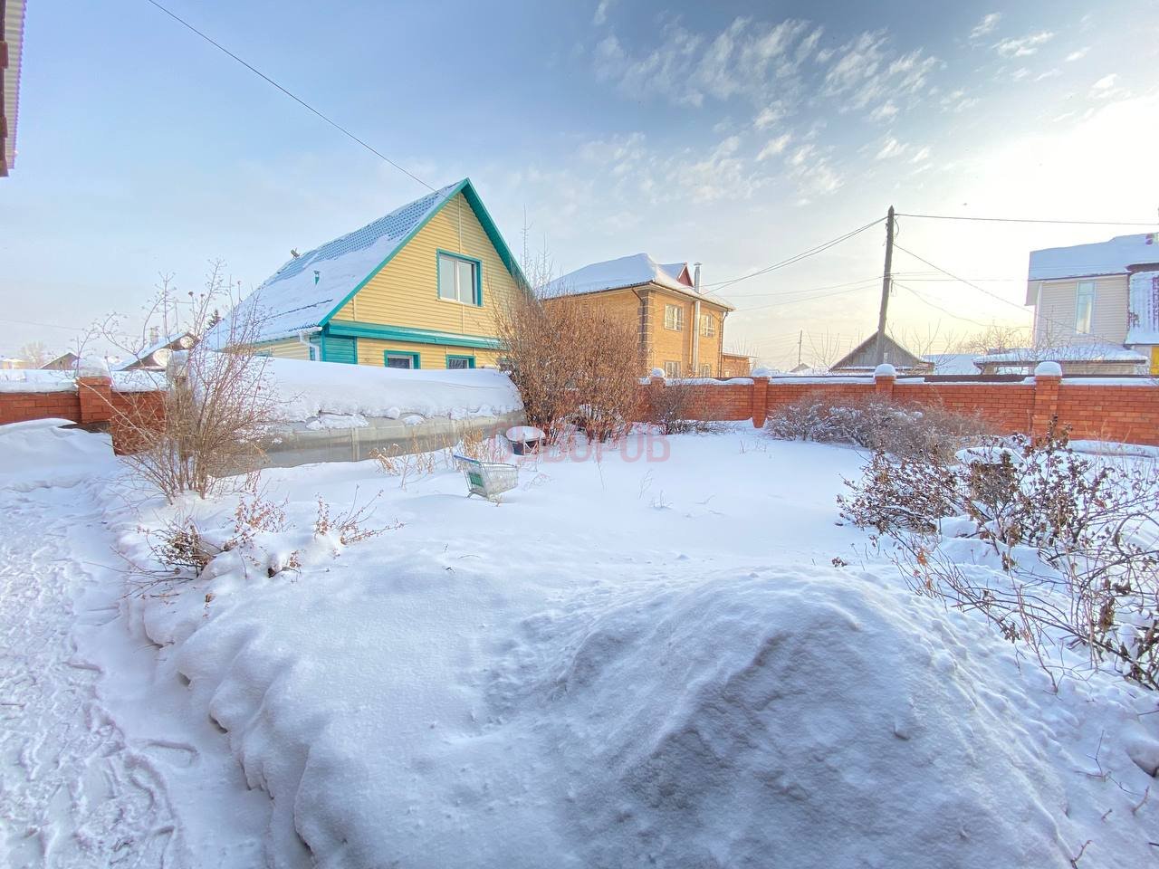 Забор облицовочный кирпич. В доме есть дымоход и труба, что позволяет огранизовать камин.