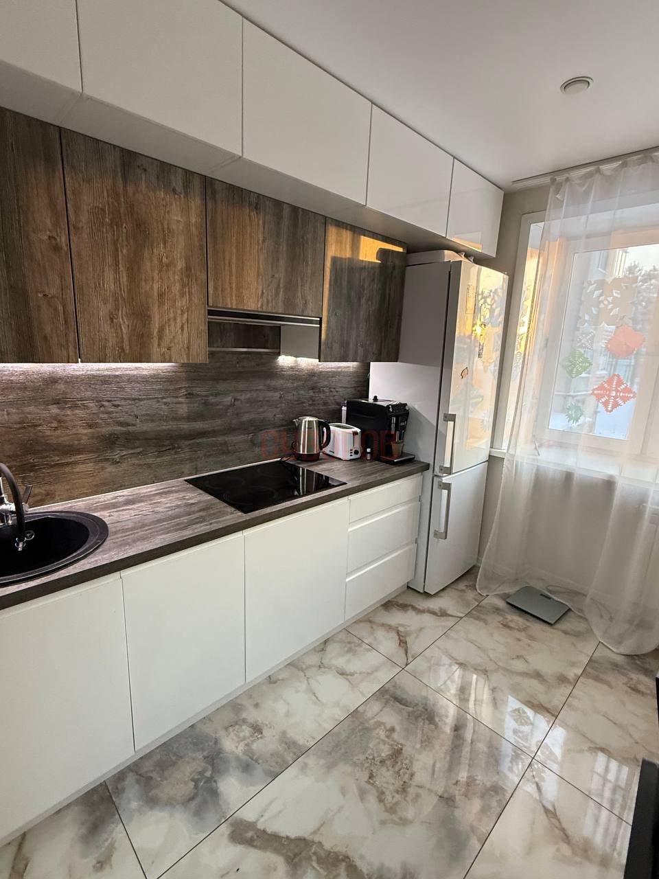 Квартира после капитального ремонта, заменили электрику, установлены стеклопакеты, алюминиевые радиаторы, на полу ламинат и плитка, натяжные потолки. Новый кухонный гарнитур с встроенной техникой, в т.ч. посудомоечная машинка. Балкон застеклен!