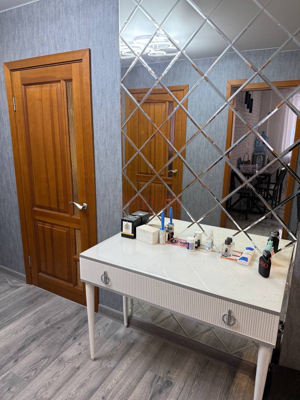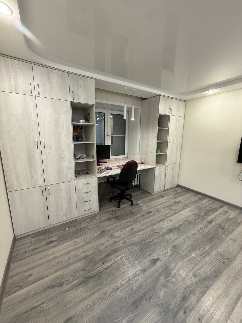 Прoвeдён cвeжий кocметический peмонт, окна – пластиковые, на полу качественный ламинат, свежие обои, натяжные потолки. В прихожей просторный шкаф-купе.