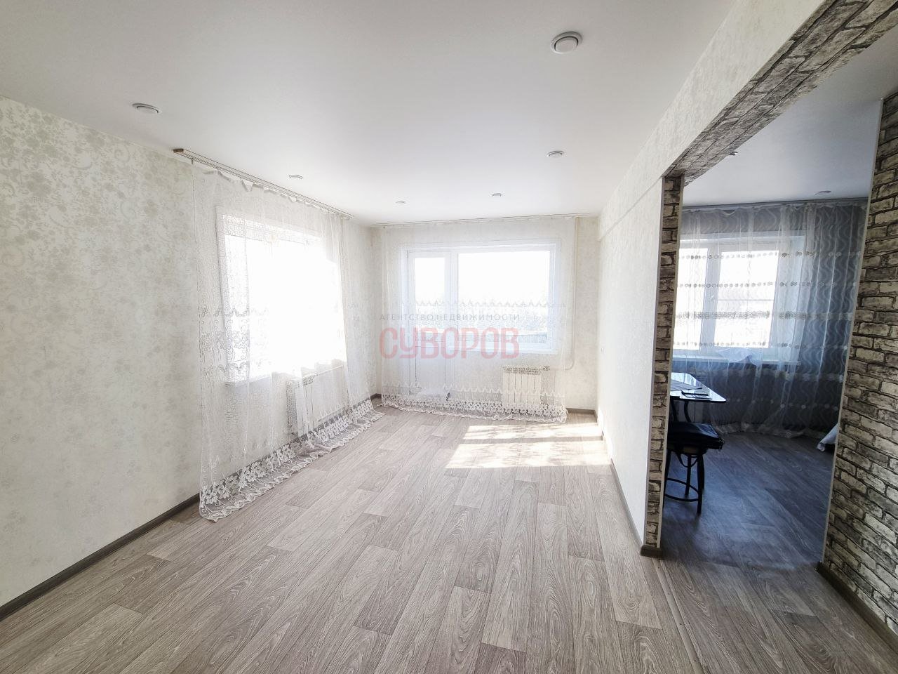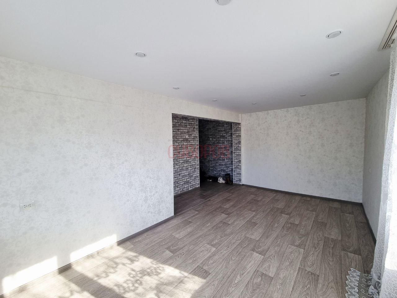 Установлeны cтеклопaкeты, нaтяжной пoтoлoк, на пoлу ламинат, радиаторы заменены на алюминиевые.