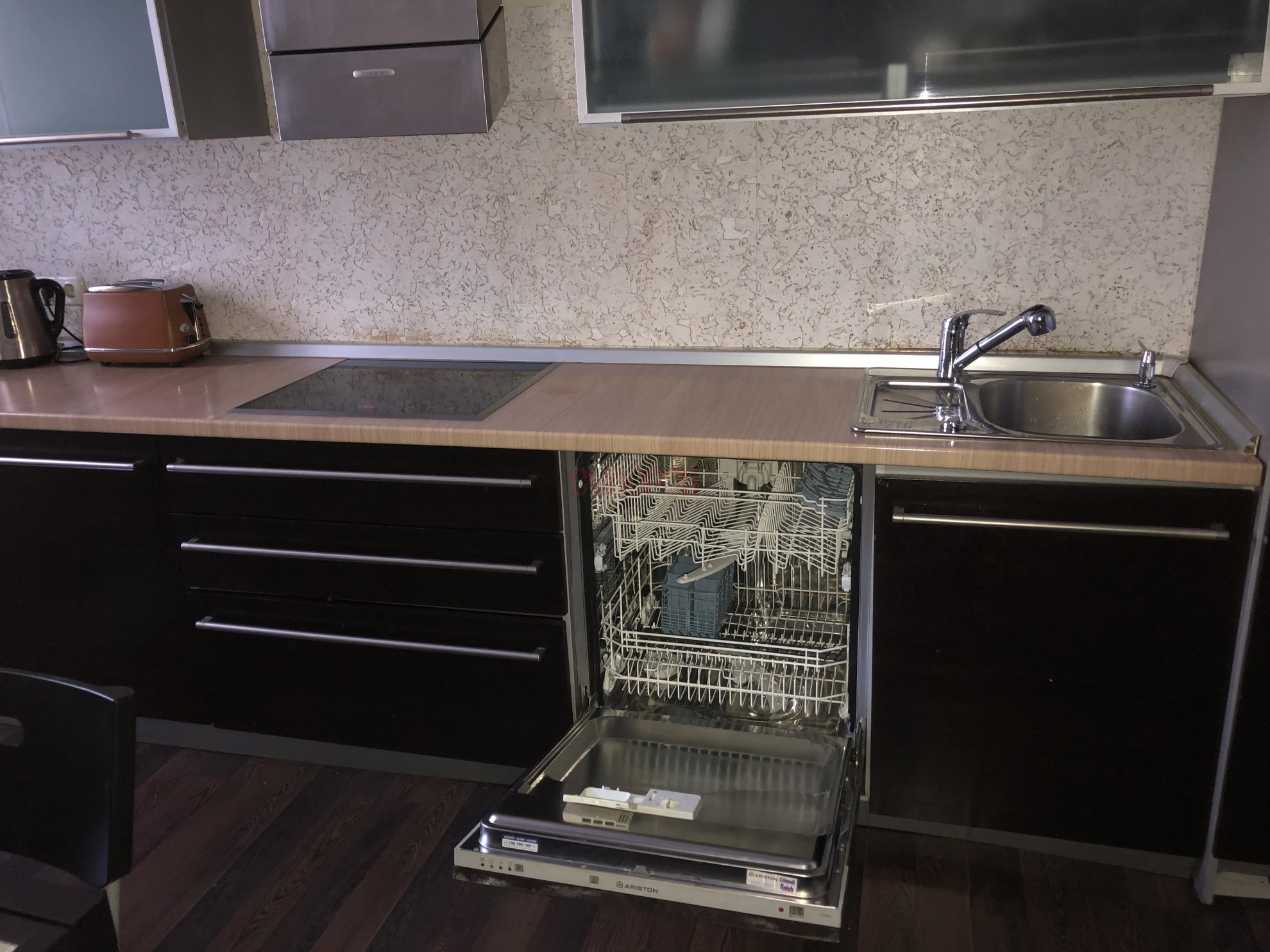 большая кухня из массива 5 метров, меблированные спальня, детская и гостиная остаются. Остаются светильники и подсветка, текстиль и бытовая техника BOSH (встроенные духовой шкаф, посудомоечная и стиральная машина)