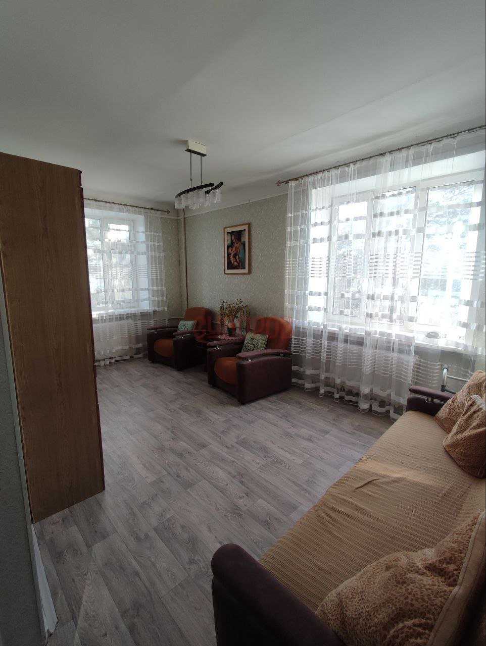 Установлены стеклопакеты, радиаторы алюминиевые. На полу ламинат.