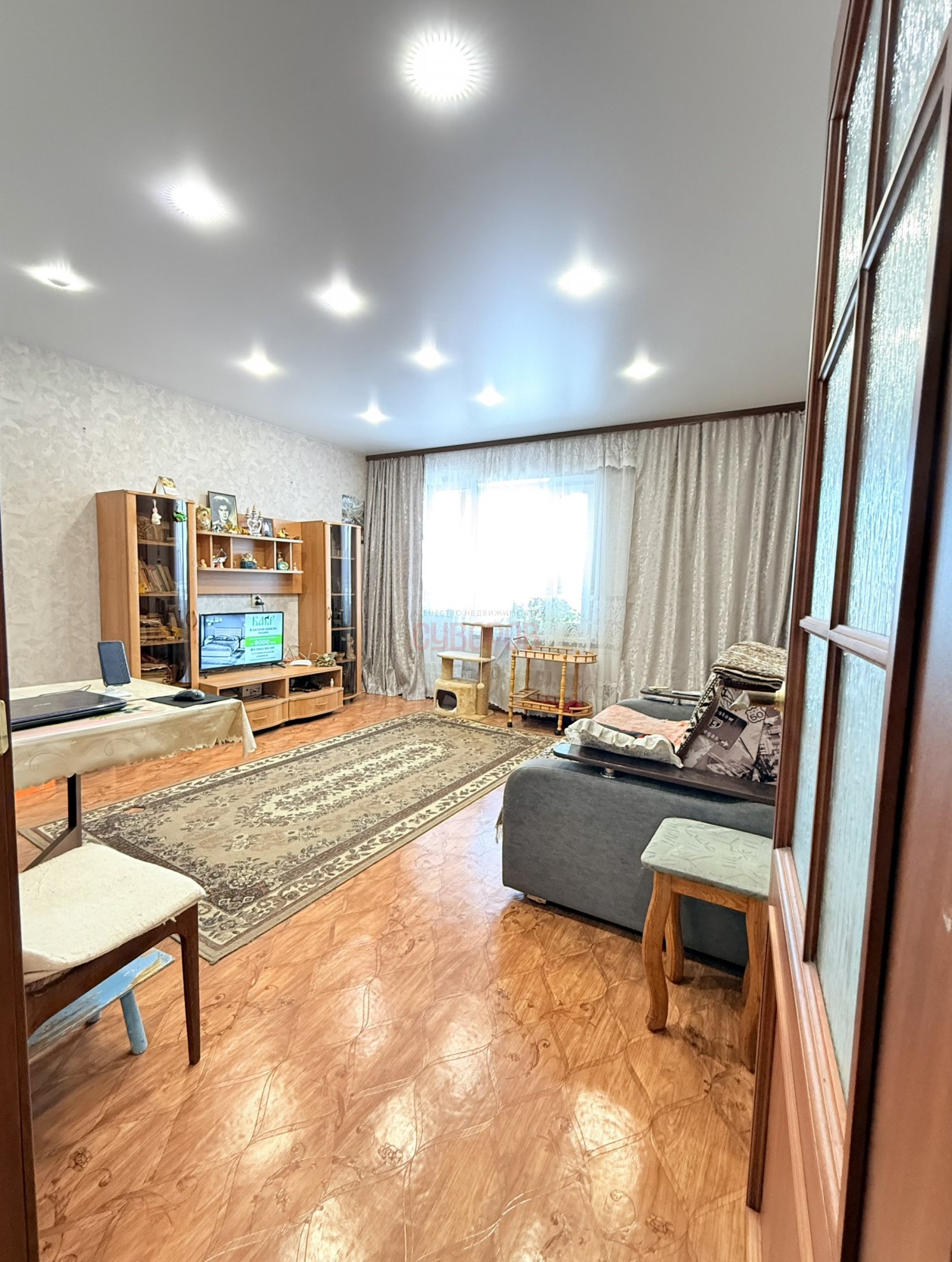 Квартира в косметическом ремонте, стеклопакеты установлены, входная дверь евро, на полу линолеум, потолки- натяжные, балкон 6 метров, санузел раздельный.