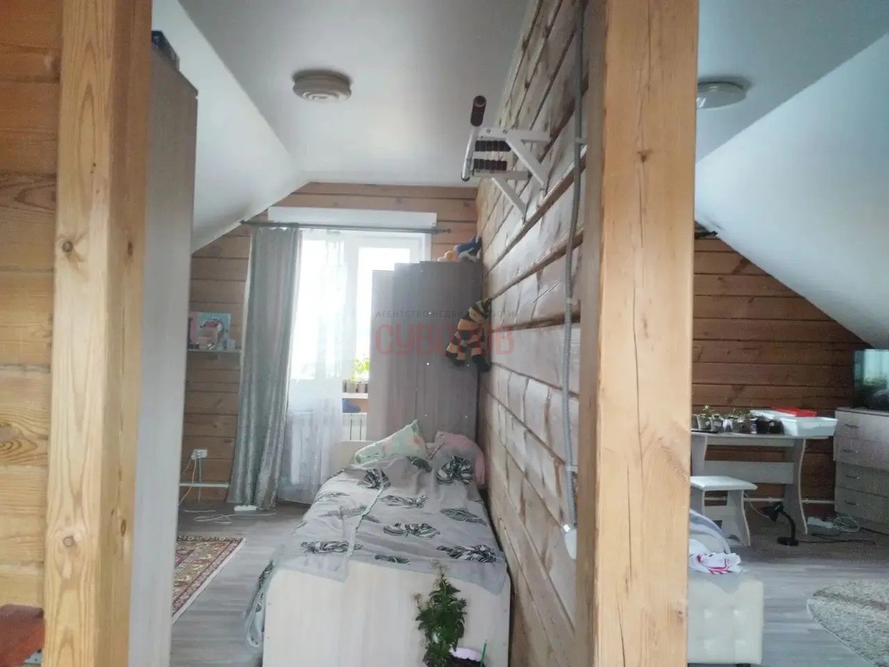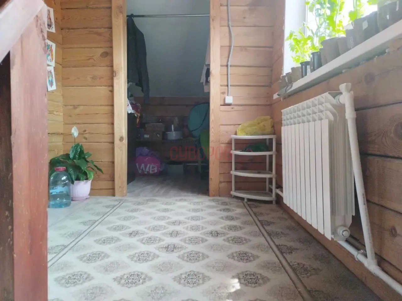 Участок оформлен с любовью: здесь красивые деревянные тропинки, бревенчатые грядки, теплица, а весь участок выложен геотекстилем и покрыт корой дерева. Также на территории есть беседка, которая отлично подойдет для семейных посиделок, двор достаточно просторный для установки батута и качелей, а также имеется вольер для собак и курятник.