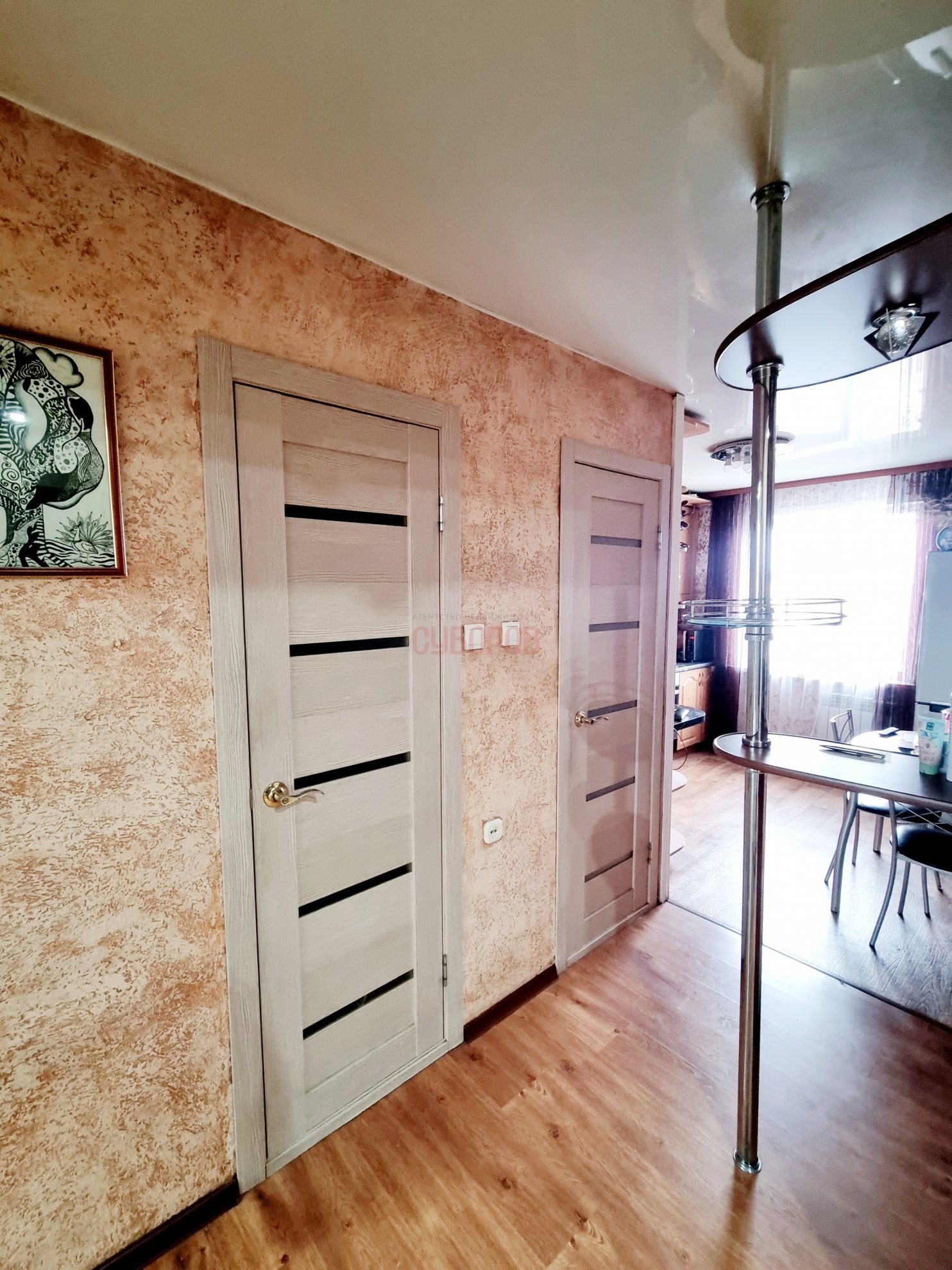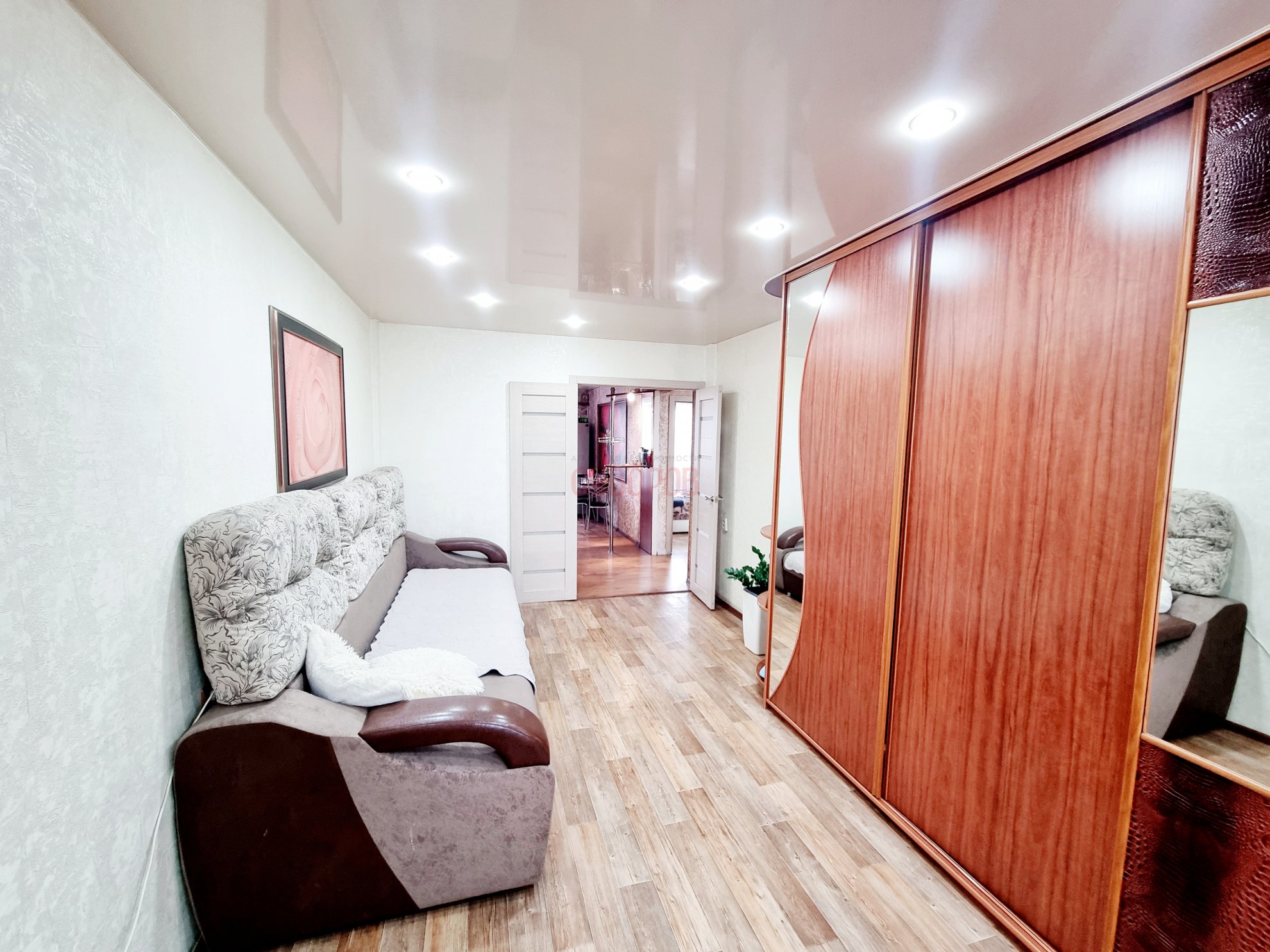 Квартира в косметическом ремонте, стеклопакеты установлены, входная дверь евро, на полу линолеум, потолки- натяжные, балкон 6 метров, санузел раздельный.
